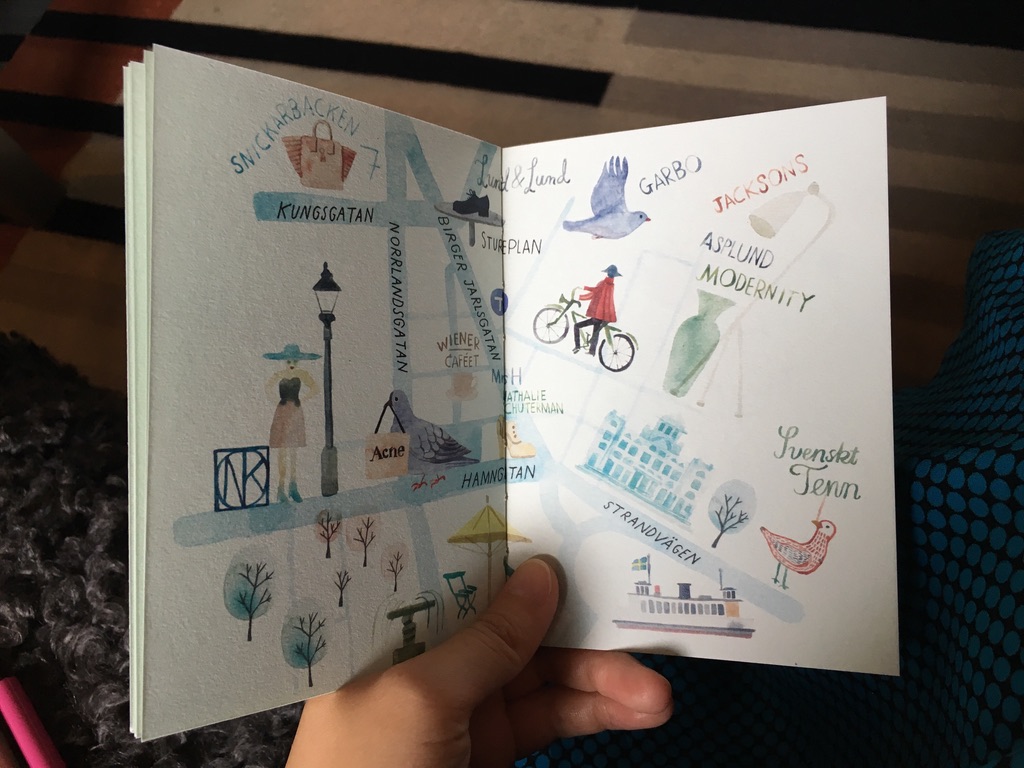 창가 책상에 놓여 있던 소책자 <The Seasons at Ett Hem>을 잊을 수 없다. 지금까지 소장하고 있는, 여행 중 얻은 보물 1호격이다. 사계절 동안의 엣헴의 모습이 어여쁜 일러스트레이션으로 그려져 있고, 로컬 베이커리와 카페, 레스토랑 등이 소개돼있다. 엣헴이 추천하는 스톡홀름 중심가의 쇼핑 스팟도 손그림 지도와 함께 항목 별로 리트스업 되어 있다. 첫 장을 열어 마지막 장을 덮는 동안 새어 나오는 미소를 멈출 길이 없었다. 마치 나만을 위해 준비된 손그림 동화책을 읽는 기분이었다. 이러한 디테일은 작은 발견, 작은 기쁨에 불과하지 않다. 좋은 에너지와 기분을 줄곧 유지할 수 있던 크나큰 즐거움이었다. 또 하나 종종 추억하는 즐거움은 '조깅을 위한 그림 지도'인데, 벽장을 열어 슬리퍼와 로브를 꺼내다 발견했다. 정갈히 접혀 있던 이 작은 지도를 펼쳐보지 못했더라면 얼마나 슬펐을까. 이 사랑스러운 지도를 들고 아침마다 동네 어귀를 경쾌하게 산책할 수 있었다. 이방인인 나를 호텔 엣헴과 동네가 토닥거려주는 느낌이었다. 나를 받아들여주는 기분, 여행자에겐 언제나 최고의 선물이다.