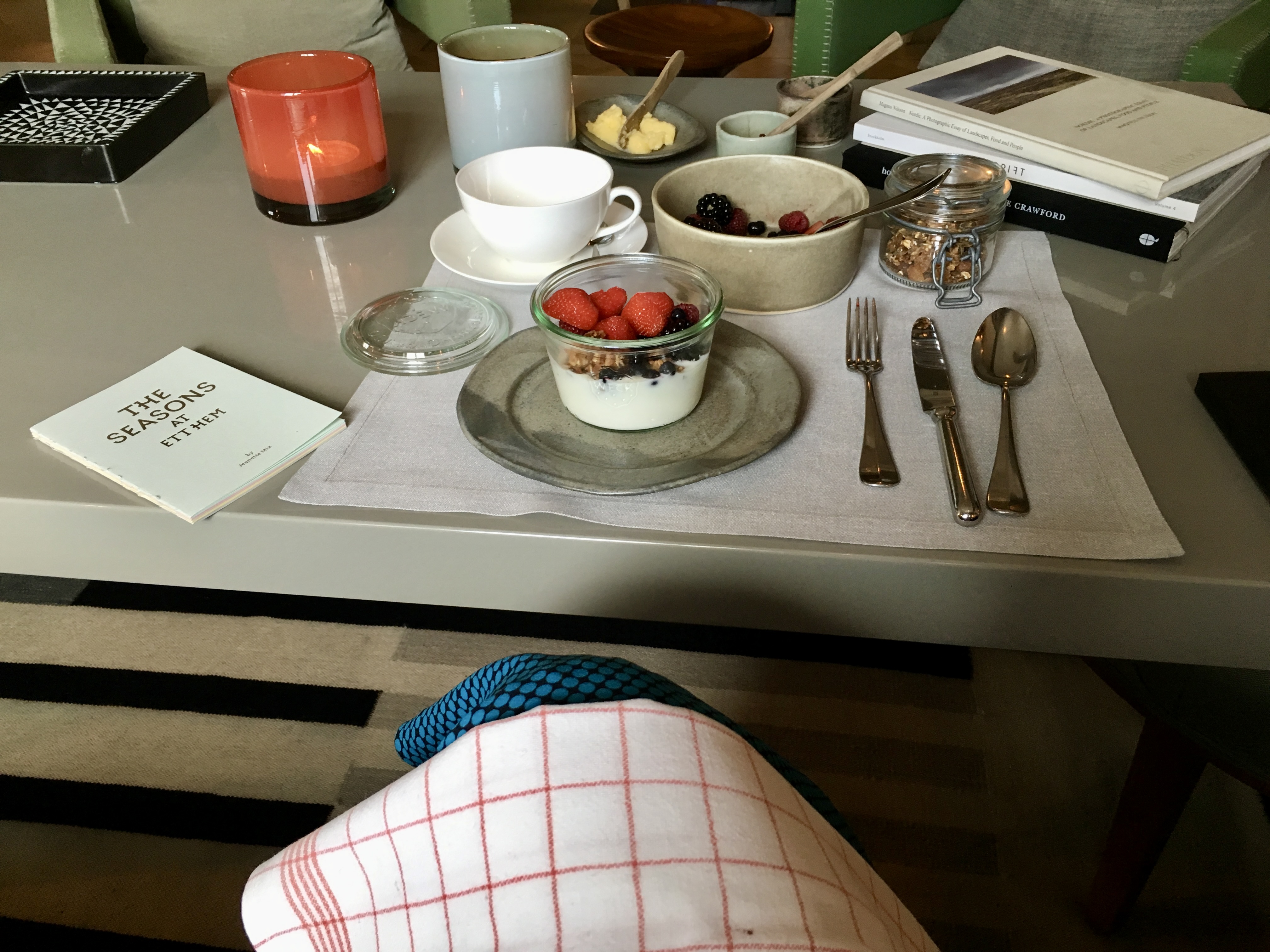 호텔 엣헴의 아침 풍경이 무척 궁금했다. 기대 이상의 숙면을 하고 조식을 먹기 위해 키친으로 향했다. 수염과 미소가 인상적이던 한 셰프님과 아침 인사를 나누었다. 그는 응접실이든 키친이든 정원이든 마음에 드는 자리에 앉아 조식을 주문하라 일러주었다. 2번에 불과하지만 그 소중한 조식의 순간을 꼭 다른 공간에서 누려보겠노라 계획했다. 응접실 중앙의 푹신한 소파에 자리를 잡고 하루의 진정한 시작인 첫 커피를 한모금 마셨다. 신선하게 내려준 커피는 내 몸의 모든 세포와 감각을 깨워주었다. 모든 식재료는 로컬에서 유기농으로 공수 받는다는 엣헴의 키친은 자부심이 대단했다. 갓 구운 빵과 요거트, 각종 치즈와 허브가 올려진 스크램블 에그, 신선한 과일이 한상 차려졌다. 보암직 먹음직은 물론 2시간 정도 조식을 즐기고 싶었다. 신기하게도 마음은 더 느슨해졌고 오늘 아무 것도 하지 않고 ‘집’에만 머무르고 싶다는 욕망이 강렬해졌다.