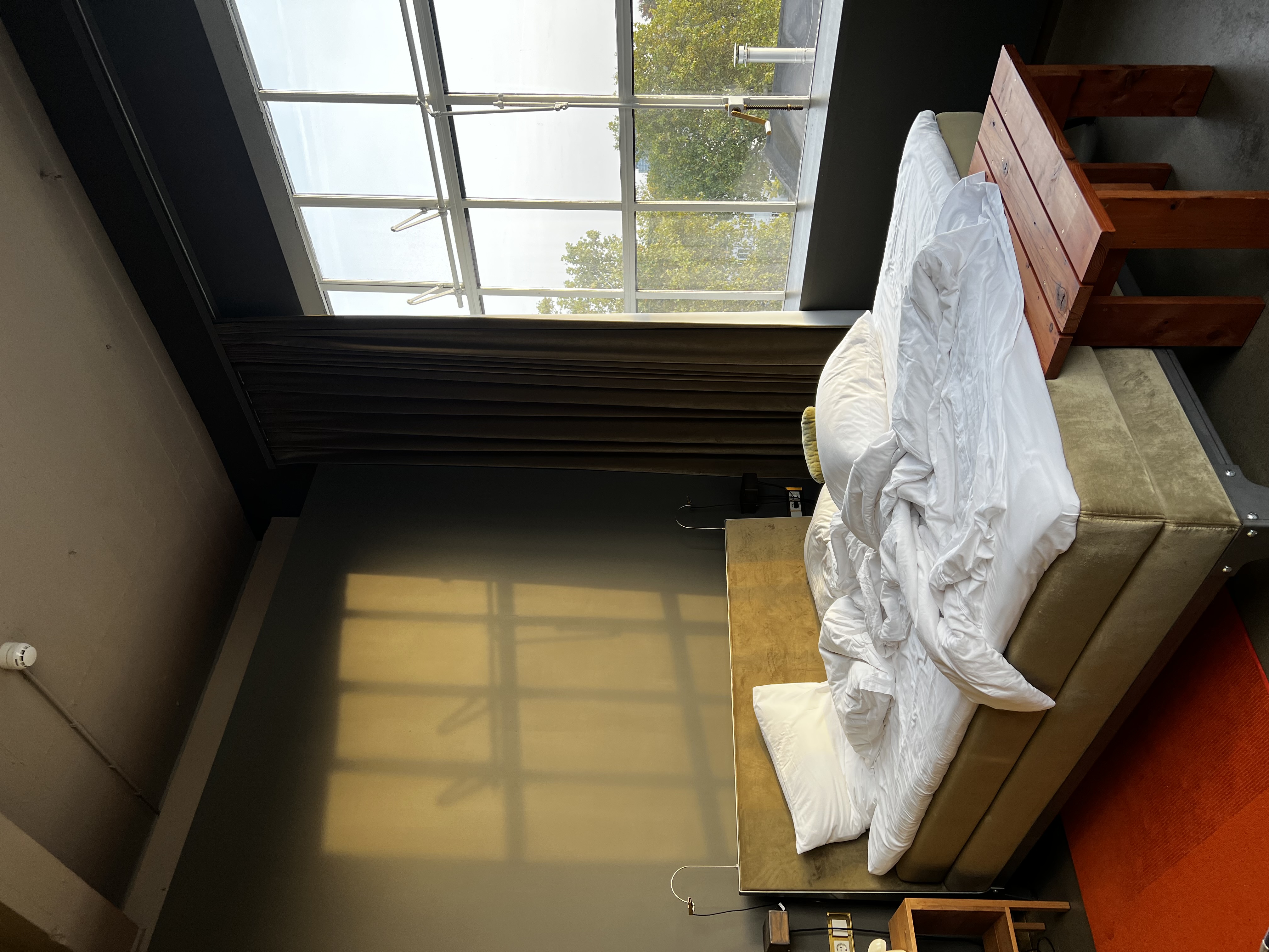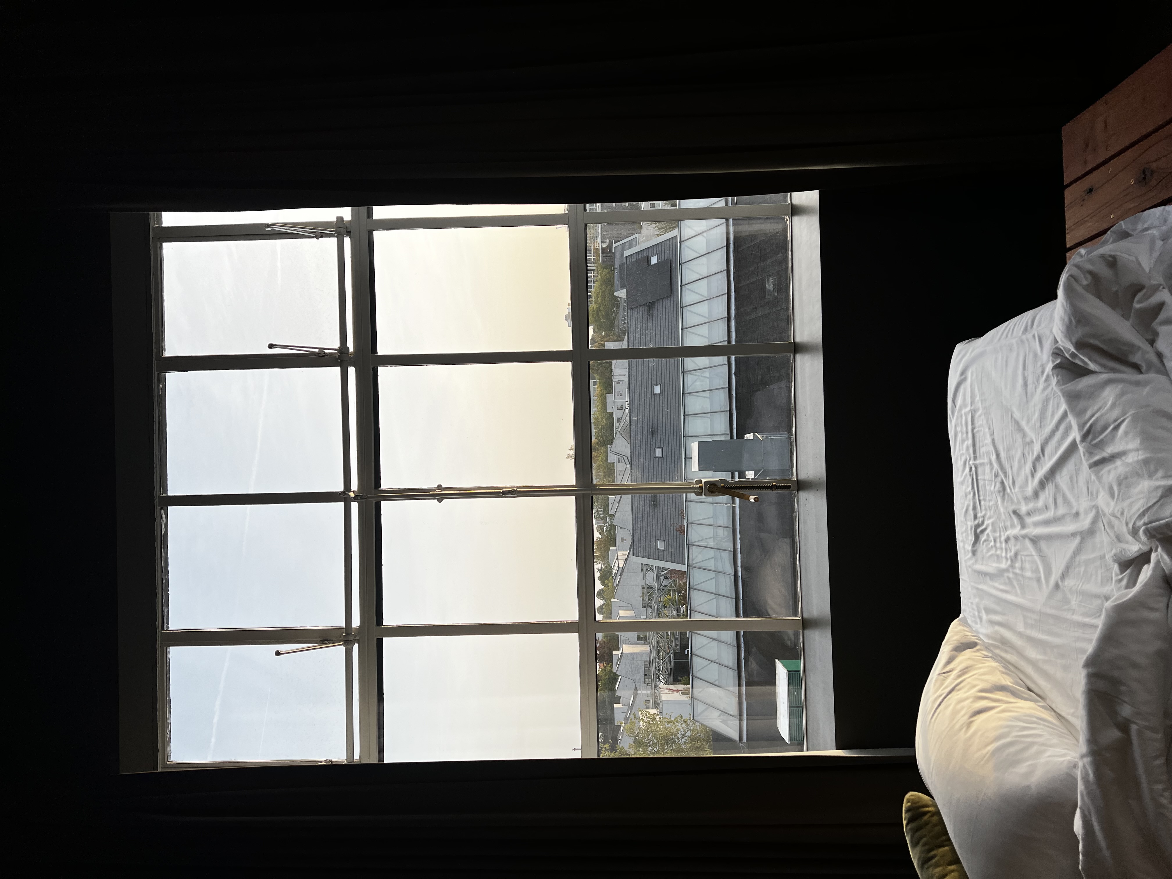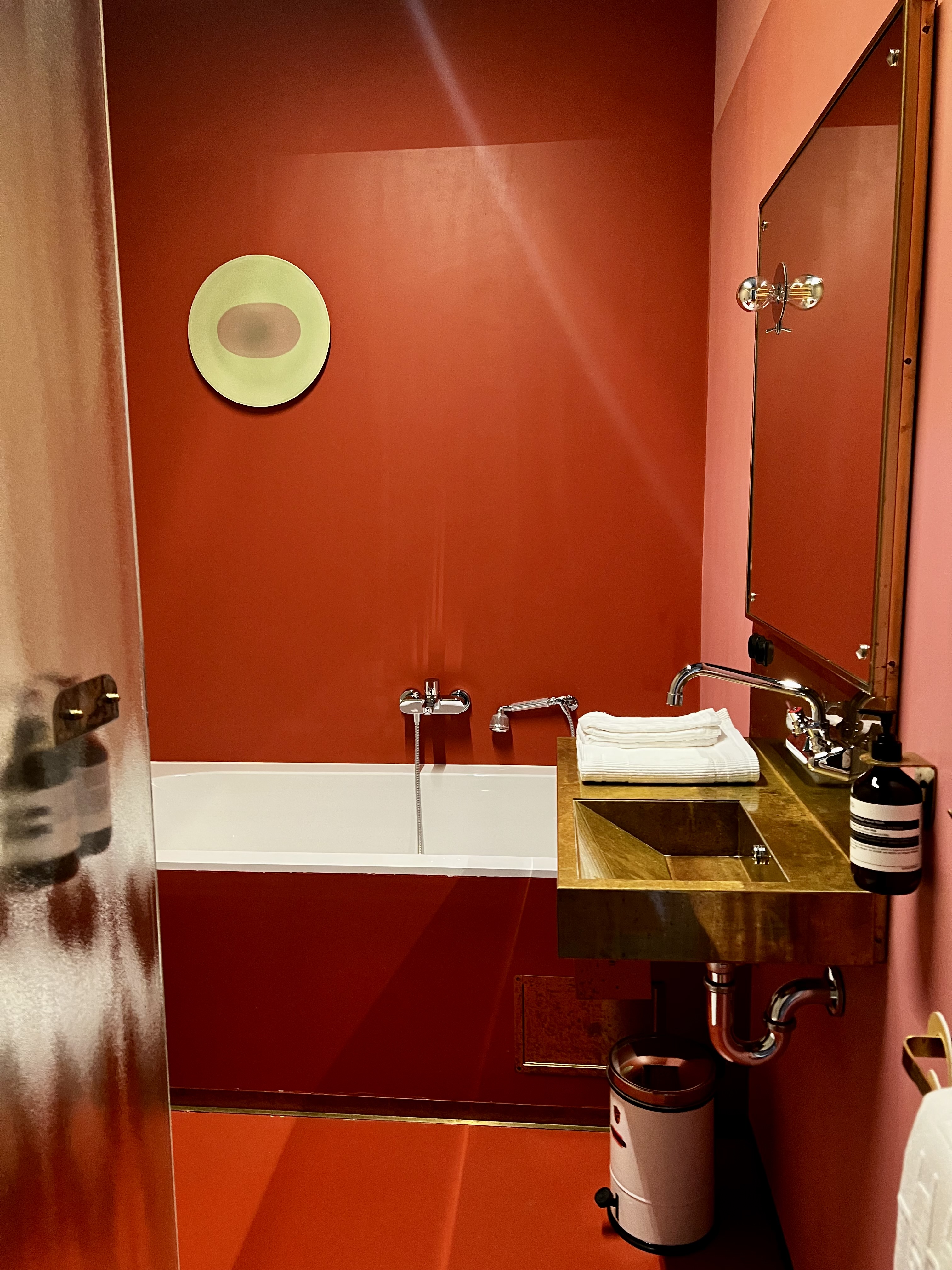 핏 헤인 에이크는 든든한 영감 레퍼런스다. 예술가는 아니지만 일과 삶의 영역에서 영감과 아이디어가 절실 할 때마다 떠올리고, 추억하고, 찾아볼 곳이 생긴 셈이다. 드디어 체크인을 했고, 갤러리를 연상시키는 원목의 복도를 지나 방에 입성했다. 이름 모를 예술가의 아틀리에를 찾아간 기분이었다. 어느 하나 같은 게 없는 묘한 색감의 타일벽을 지나 크고도 넓은 창을 마주했다. 방의 두 벽면 모두 높이 솟은 창문으로 이루어져 있어 가슴이 탁 트였다. 창 밖 풍경의 절반이 하늘이었다. 방에 들어선 순간 현대미술의 한 작품 속으로 걸어들어온 느낌이었는데, 창밖 풍경은 그림 속의 또다른 그림이었다. 문고리에서 수전과 세면대로, 침대맡 조명과 콘센트, 온갖 버튼으로 이어진 금빛 메탈의 활약이 엄청났다. 따스한 느낌을 안겨주는 패브릭과 원목이 주를 이루는 방에서 메탈은 물성과 색감이 전혀다른 오브제로 작용하며 아름다움을 한층 끌어올려주고 있었다. 문고리에 걸어두는 DND(do not disturb)사인 마저 은빛 메탈이었는데 진심으로 훔쳐오고 싶었다.