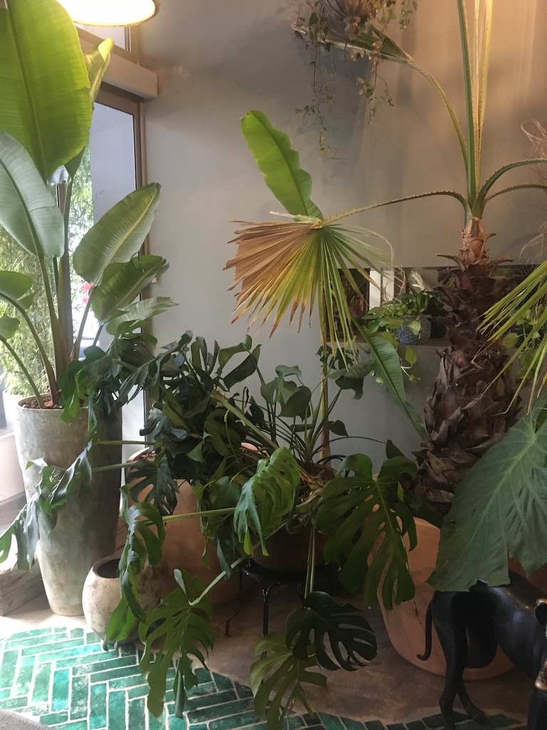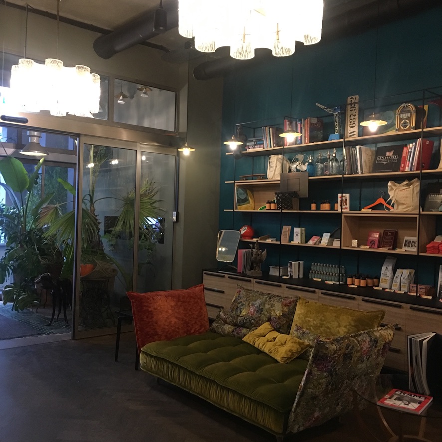 바닥에 무심히 깔려 있지만 빛나는 광을 한 없이 뽐내는 녹색 타일이 흥미로웠다. 재밌게 예쁘다고나 할까. 입구 양옆을 가득 채우고 있는 키도 크고, 잎도 크고 개성도 제가각인 화분들 사이에 서 있자니 ‘이토록 열렬한 초록의 환영을 받아본 적 있던가’ 싶었다. 그 빽빽한 푸르름 사이에 놓여져 있는 빨간 철제 의자 두개에 시선이 닿았다. 어여쁘기도 하지만 다정한 배려 같아서 말이다. 택시 기다릴 때 앉아있기 딱이다 싶었는데 역시 4일 동안 나를 포함 많은 이들이 애용했다. 아직 로비로 들어가지도 않았는데 호텔이 자꾸 말을 걸어왔다. 체크인 순간부터 체크아웃 순간까지 호텔은 끊임없이 내게 질문을 건네왔다. 호텔 곳곳에 촘촘히 쌓여 있는 디테일을 혹여 내가 놓칠라 싶어 계속해서 물어오는 것만 같았다. “이건 어때요? 저건 어때요? 마음에 들어요? 왜요?” 소리 없는 질문이 계속해서 나를 여기저기로 이끌었고, 질문에 답하듯 호텔의 이모저모를 즐길 수 있었다.